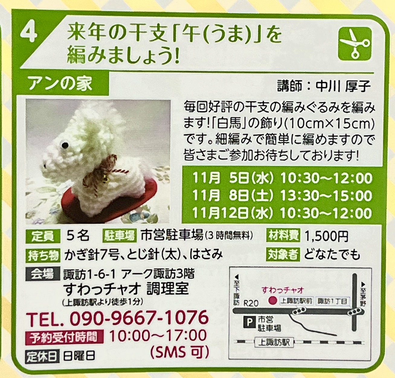 秋の手づくり市はおなじみのアーク諏訪2Fと柳並公園で行います。