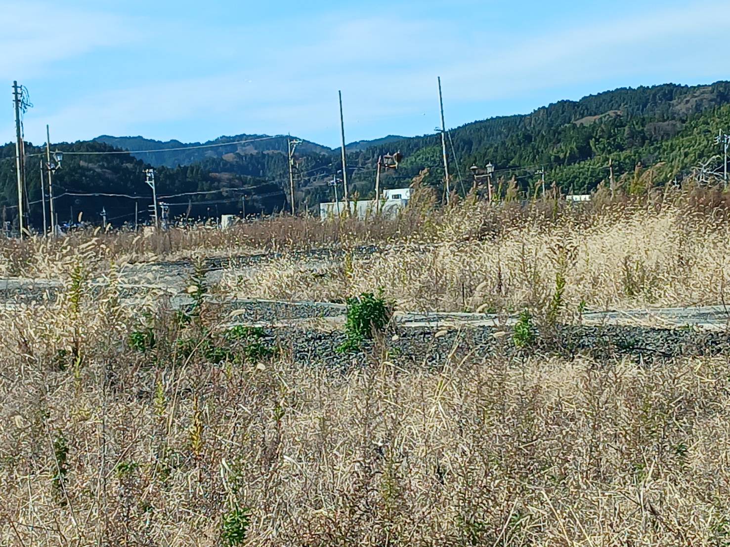 当時の情景と比べると、活気のあった朝一が草だらけになっている、車道が割れていたり二車線が一車線になっているなど