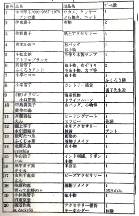 出店者一覧